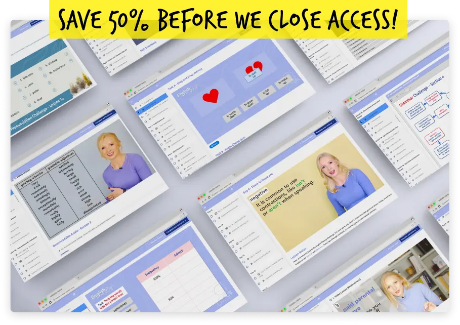 12 x 30-day challenges. Lifetime access. Your entire year of English solved at my lowest price ever.