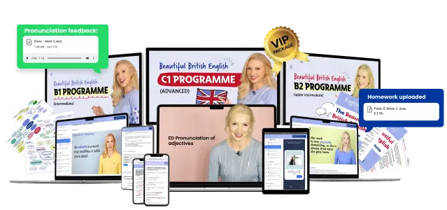My Beautiful British English Programmes are 12-week courses designed to take your English to the next level, as defined by the CEFR.