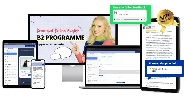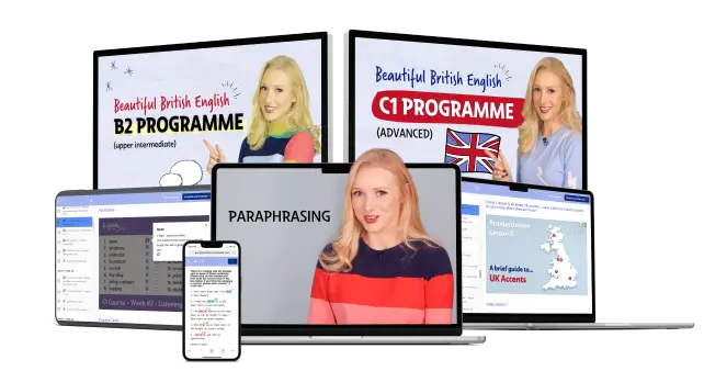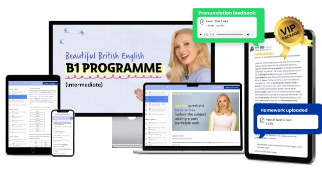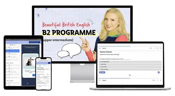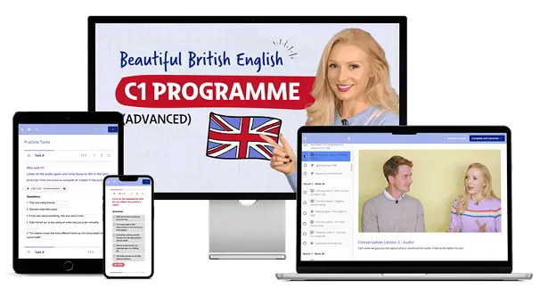 For the B2 Programme, you need to have a minimum of a B1 level of English – intermediate. In 3 months, the course will train you to master the B2 level, so you are in the perfect position to start C1. As a rule, if you can understand most of what I say in my videos without subtitles, you are ready for the B2 Programme.