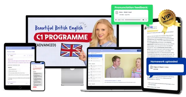 As you master three full levels from B1 to C1, you’re simultaneously perfecting your pronunciation at every step. It’s the complete transformation!