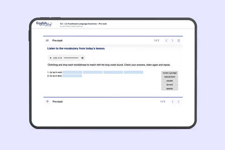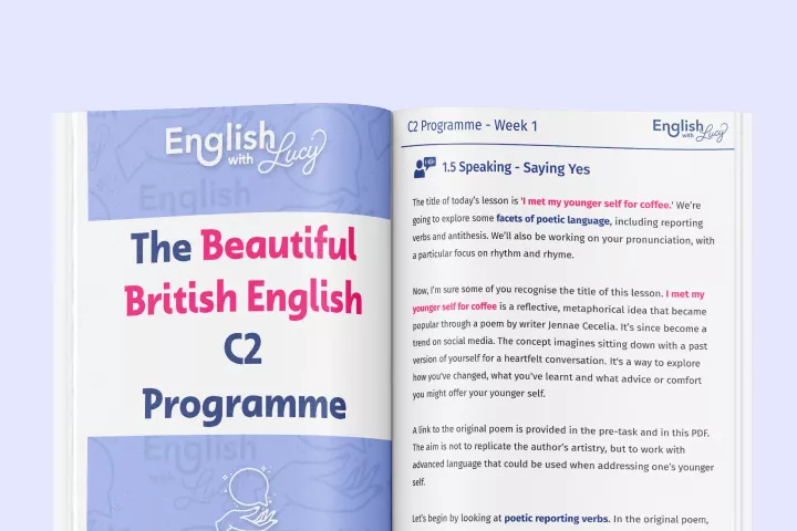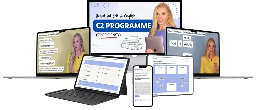 You need to have a C1 level of English to benefit from this programme, as it covers C2-level language. If you haven’t yet taken a C1 course, I recommend starting here (with added 30% discount on all plans).
