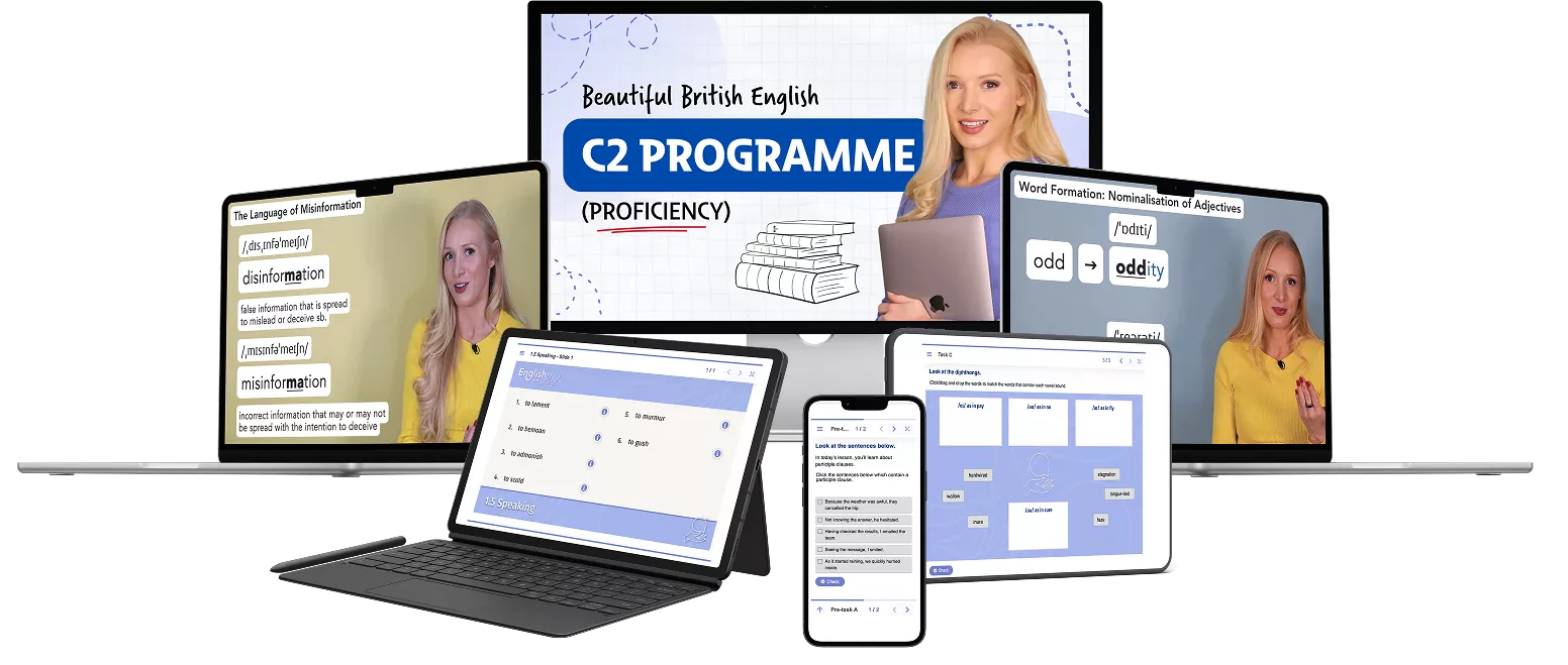The Beautiful British English C2 Programme gives you the structure and depth you need to achieve ultimate fluency.