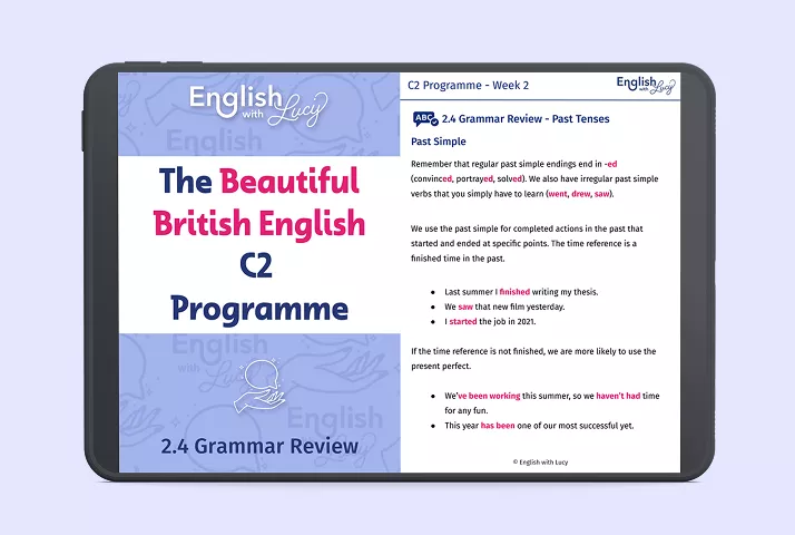The Beautiful British English C2 Programme is not an exam preparation course. It is a general English course designed to help you express yourself at a C2 level in everyday life. Although the skills we cover will help push you to the level you need to pass an official exam, we do not teach exam techniques or offer exam practice.