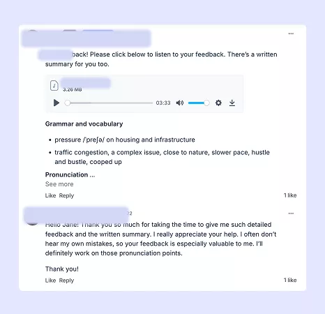 6 x personalised speaking and pronunciation feedback & guidance