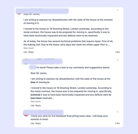 Homework tasks include both speaking and writing tasks. You can submit writing for corrections and personal feedback and speaking recordings for language and pronunciation feedback.