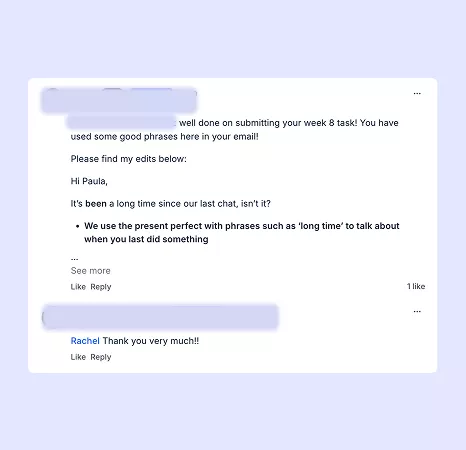 If you choose the VIP Feedback Pack, you will receive formal weekly homework tasks and access to a VIP space in the community to contact our teachers.