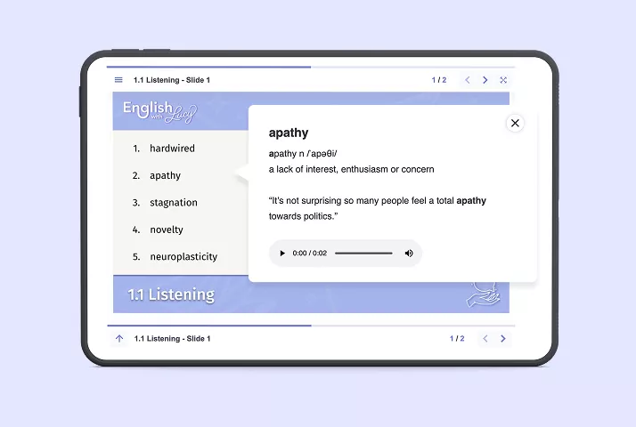 That’s why this course also includes grammar refresher PDFs, vocabulary banks explaining new words clearly and videos that break down new words and concepts in an easily digestible way.